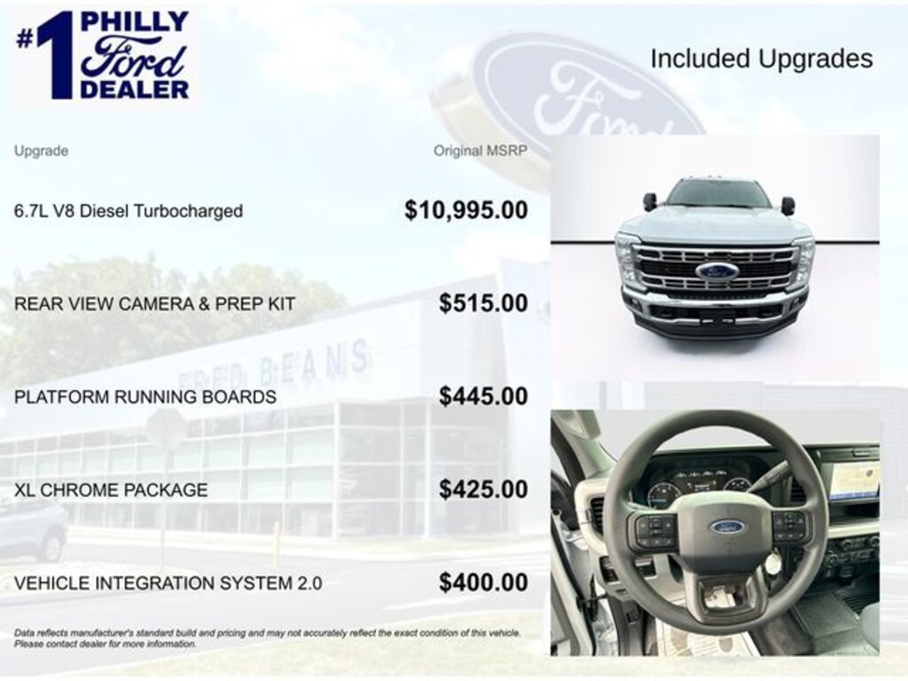 • Engine: 6.7L 4 Valve OHV Power Stroke® V8 Turbo Diesel B20 Engine with Manual Push-button Engine-Exhaust Braking